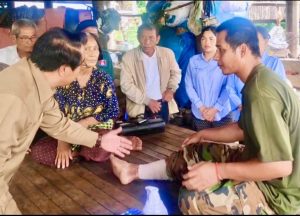 បន្ទាប់ពីចប់កម្មវិធី ឯកឧត្តម សុខ ចាន់ភក្តី ប្រធានក្រុមការងារចុះស្រុកចិត្របុរី និងអភិបាលស្រុកចិត្របុរី និងក្រុមការងារបន្តចុះទៅសួរសុខទុក្ខប្អូន ជុំ តូ ជាកងទ័ពជួរមុខនៅសមរភូមិតំបន់មុំបី ដែលសុំច្បាប់ពីពេទ្យ ក្រោយពីរងរបួសដោយសារអំបែងគ្រាបប់ ក្នុងពេលប្រយុទ្ធជាមួយទ័ពថៃ ក្នុងជម្លោះសង្គ្រាមព្រុំដែន ដើម្បីមកបុណ្យសព៧ថ្ងៃឱពុករបស់ប្អូន ដែលទទួលមរណភាពថ្មីៗនេះ ក្នុងភូមិសំបុក ឃុំសំបុក ស្រុកចិត្របុរី។ ឆ្លៀតឱកាសនោះ ឯកឧត្តមប្រធានក្រុមការងារ និងក្រុមការងារបានចូលរួមជួយឧបត្ថម្ភនូវថវិកាសរុបចំនួន៥២០,០០០រៀល និងសារុងចំនួន០៣ ជូនដល់កូនស្រីទាំង៣របស់មីងជាម្តាយរបស់យុទ្ធជន ដើម្បីជួយសម្រួលដល់ការលំបាកចំពោះមុខដល់គ្រួសារវីរយុទ្ធជនខាងលើ។