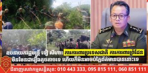 តើបងប្អូនមានបានកត់សម្គាល់ដែរឬទេ? ថាកងកម្លាំងយើងមិនប្រដាប់អាវុធ នៅទីតាំងកើតហេតុ (ឃុំអូរបីជាន់) នោះទេ គឺយើងប្តេជ្ញាចិត្តអនុវត្តបទឈប់បាញ់ឲ្យមានប្រសិទ្ធិភាព។ សូមបងប្អូនជនរួមជាតិយោគយល់ ពីទឹកចិត្តកងកម្លាំងយើងនៅទីនោះ និងរួមគ្នាអត់ធ្មត់ដើម្បីប្រយោជន៍ជាតិយើងទាំងមូល។ យើងនៅសល់កិច្ចប្រជុំវិសាមញ្ញRBC រវាងយោធភូមិភាគទី៤ និងយោធភូមិភាគទី២ (ថៃ) នៅថ្ងៃទី២៧ ខែសីហានេះ និងកិច្ចប្រជុំ GBC នៅរាជធានីភ្នំពេញ នៅថ្ងៃទី៩-១០ ខែកញ្ញាខាងមុខនេះទៀត។