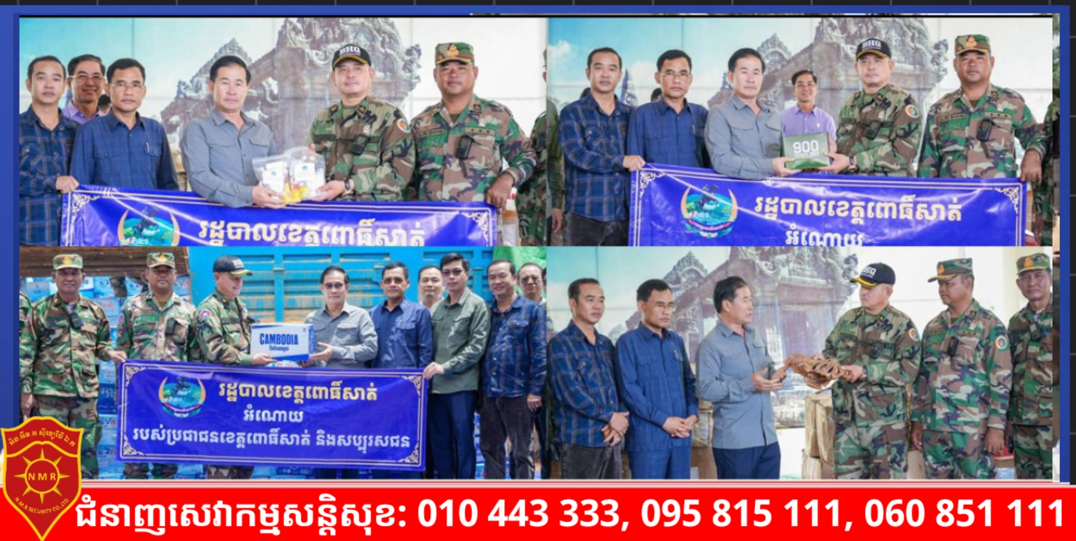 អំណោយរបស់ប្រជាជនខេត្តពោធិ៍សាត់ និងសប្បុរសជន ព្រមទាំងសាខាសមាគមនារីកម្ពុជា ដើម្បីសន្តិភាព និងអភិវឌ្ឍន៍ខេត្ត ដែលត្រូវប្រគល់ជូនកងទ័ព ទិសខេត្តព្រះវិហារ រួមមាន៖ អំបុក២៣បេ ស្មើនឹង១,១៥០កញ្ចប់, សាច់ផាត់៧០០កញ្ចប់, ត្រីងៀតត្រីឆ្តោ២៨៨គីឡូក្រាម, ត្រីងៀតត្រីរ៉ស់១០៥គីឡូក្រាម, ត្រីងៀតត្រីប្រា១២៣គីឡូក្រាម, ប្រហុក៥៥គីឡូក្រាម, ត្រីស្រស់៤កេស, ទុរេន២៥០គីឡូក្រាម, ទឹកបរិសុទ្ធ១ពាន់កេស, ថ្នាំ និងបរិក្ខាពេទ្យ១ពាន់ឃីត ព្រមទាំងស្បៀងអាហារ និងផ្លែឈើមួយចំនួនទៀត៕