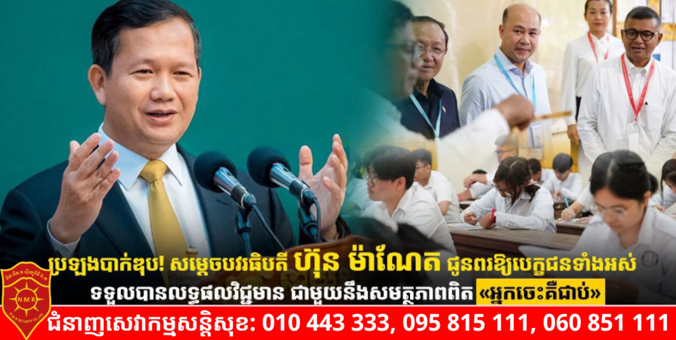 ភ្នំពេញ)៖ សម្តេចបវរធិបតី ហ៊ុន ម៉ាណែត នាយករដ្ឋមន្ត្រីនៃកម្ពុជា តាមរយៈបណ្តាញទំនាក់ទំនងសង្គមផ្លូវការ នៅព្រឹកថ្ងៃទី២៨ ខែសីហា ឆ្នាំ២០២៥នេះ បានចាប់អារម្មណ៍អំពីដំណើរការប្រឡងសញ្ញាបត្រមធ្យមសិក្សាទុតិយភូមិ (បាក់ឌុប) ឆ្នាំសិក្សា ២០២៤-២០២៥។