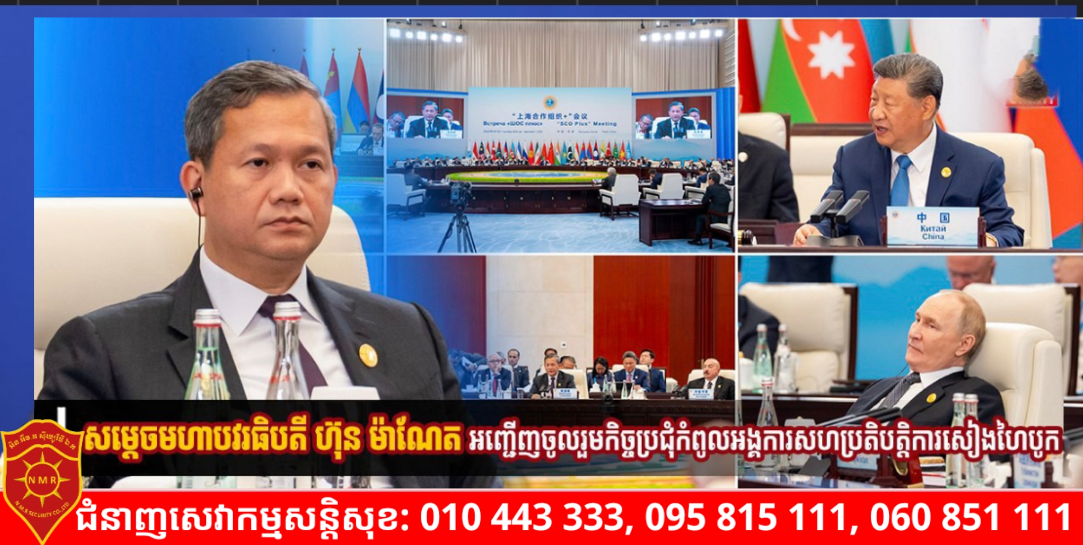 ធានជីន, ចិន)៖ នៅរសៀលថ្ងៃចន្ទ ទី១ ខែកញ្ញា ឆ្នាំ២០២៥នេះ សម្តេចមហាបវរធិបតី ហ៊ុន ម៉ាណែត នាយករដ្ឋមន្ត្រីកម្ពុជា បានអញ្ជើញចូលរួមកិច្ចប្រជុំកំពូលអង្គការសហប្រតិបត្តិការសៀងហៃបូក ដែលរៀបចំធ្វើឡើងនៅទីក្រុងធានជីន ប្រទេសចិន។