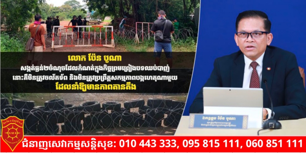 ភ្នំពេញ)៖ លោក ប៉ែន បូណា អ្នកនាំពាក្យរាជរដ្ឋាភិបាលកម្ពុជា បានសង្កត់ធ្ងន់ ចំនួន ២ចំណុច ដែលកំណត់នក្នុងកិច្ចព្រមព្រៀងបទឈប់បាញ់ ដោយក្នុងនោះនៅត្រង់ចំណុចទី២ គឺការមិនចល័តកងទ័ព និងចំណុចទី៤ ភាគីទាំងពីរមិនត្រូវប្រព្រឹត្តសកម្មភាពបង្កហេតុណាមួយ ដែលនាំឱ្យមានភាពតានតឹងឡើយ។