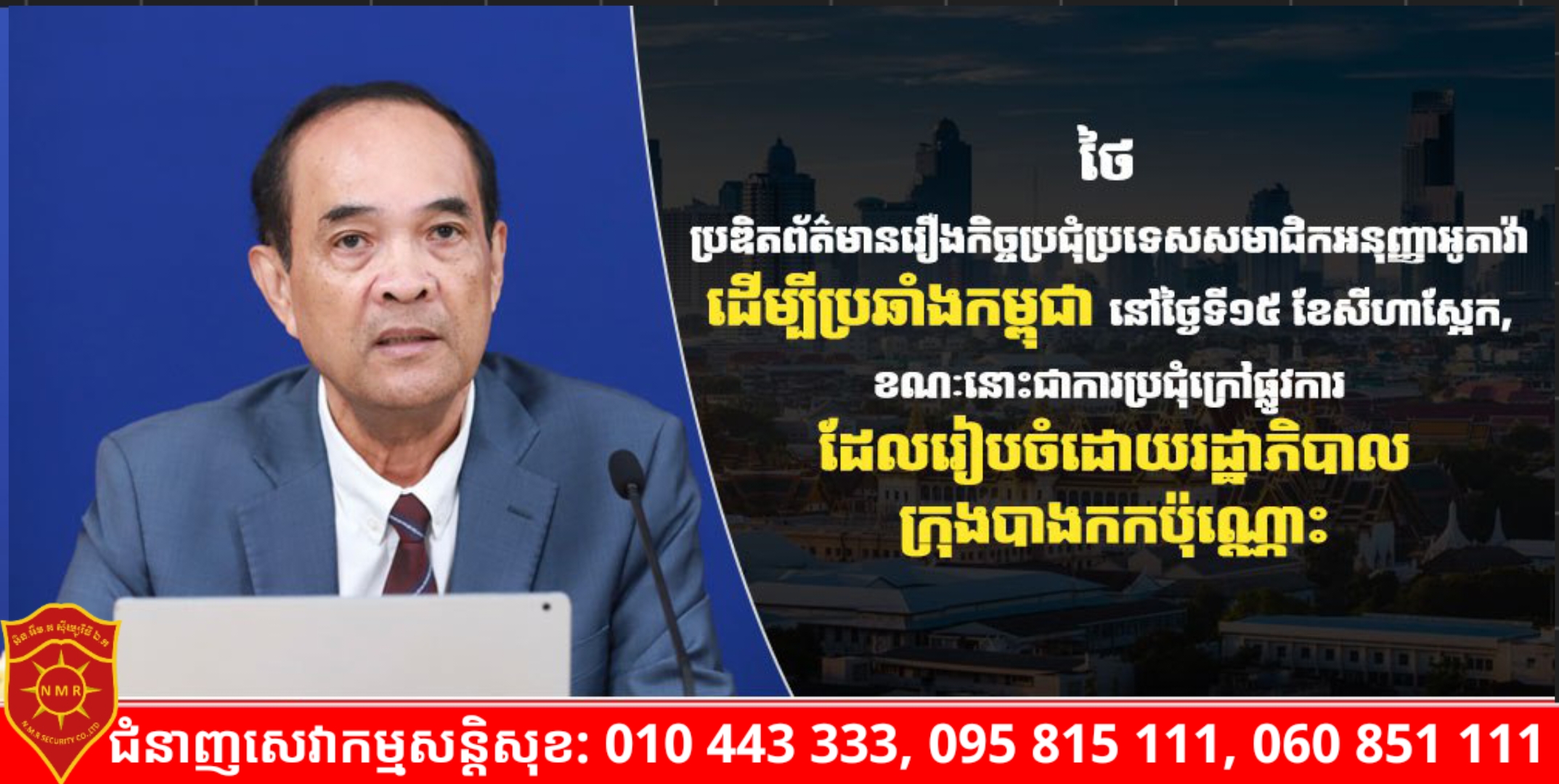 អ្នកនាំពាក្យក្រសួងការបរទេសកម្ពុជា បានថ្លែងយ៉ាងដូច្នេះថា «ខ្ញុំសូមធ្វើការកែតម្រូវ ចំពោះការរៀបរាប់បំភ័ន្ដការពិតដែលថានឹងមានកិច្ចប្រជុំផ្លូវការមួយរបស់បណ្ដាប្រទេសសមាជិកនៃអនុញ្ញាតអូតាវ៉ា នៅទីក្រុងបាងកក ថ្ងៃទី១៥ ខែសីហា ឆ្នាំ២០២៥ […] ព្រឹត្តិការណ៍នៅទីក្រុងបាងកក វាជាការប្រជុំផ្ដល់ព័ត៌មានជូនចំពោះអង្គទូត ដែលរៀបចំឡើងដោយភាគីថៃ មិនមែនជាផ្នែកមួយនៃដំណើរការផ្លូវការរបស់អនុសញ្ញាអូតាវ៉ាឡើយ»។